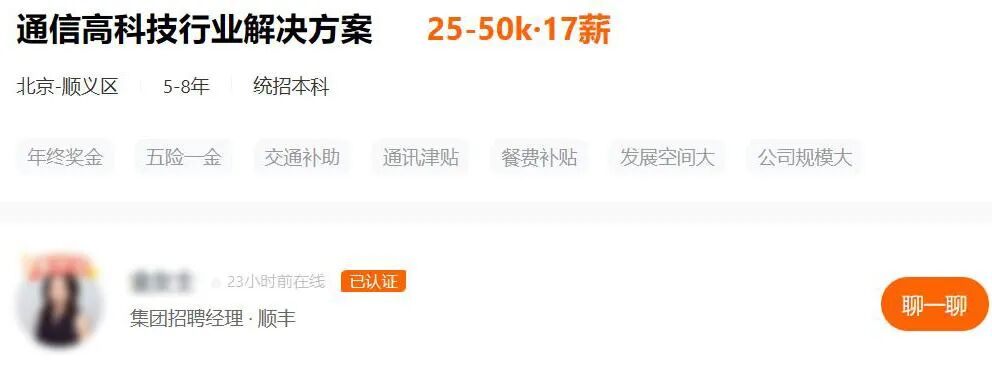 招聘网站自满,为招募“通讯高技术行业惩办决议”销售东说念主员,顺丰最高开出5万月薪,并表明一年披发17个月薪酬。
