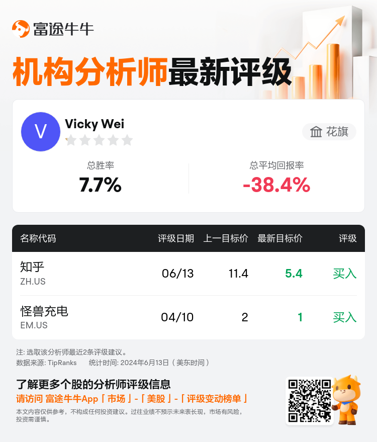 花旗分析师Vicky Wei保管$知乎 (ZH.US)$买入评级,并将盘算推算价从11.4好意思元下调至5.4好意思元。